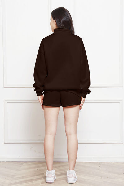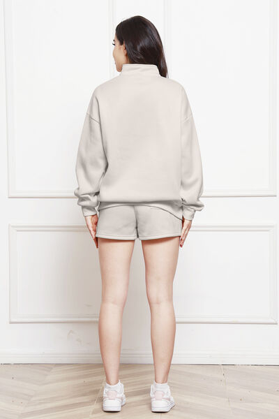 Half Zip Long Sleeve Sweatshirt and Drawstring Shorts Set