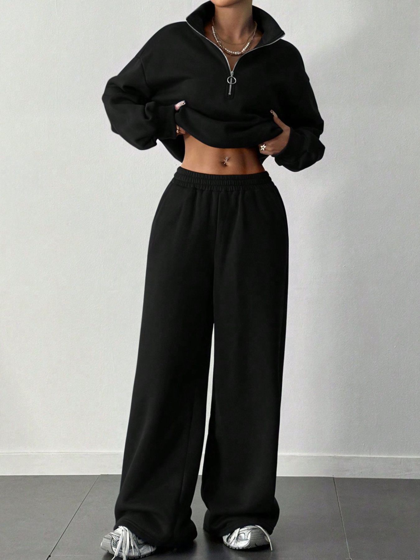 Half-Zip Long Sleeve Sweatshirt and Pants Set