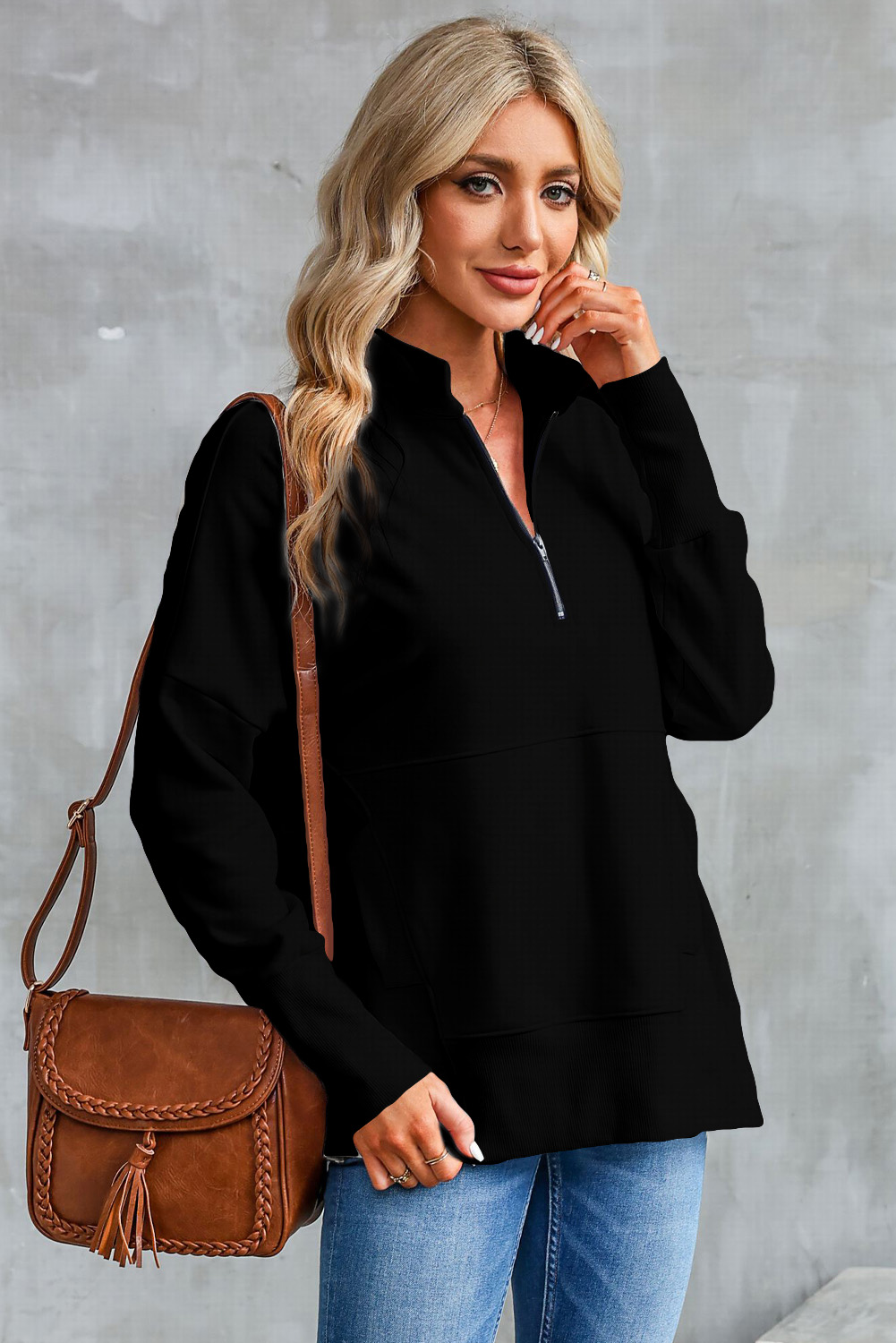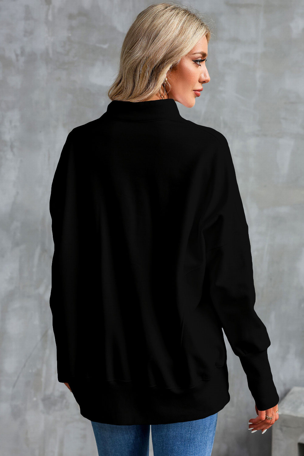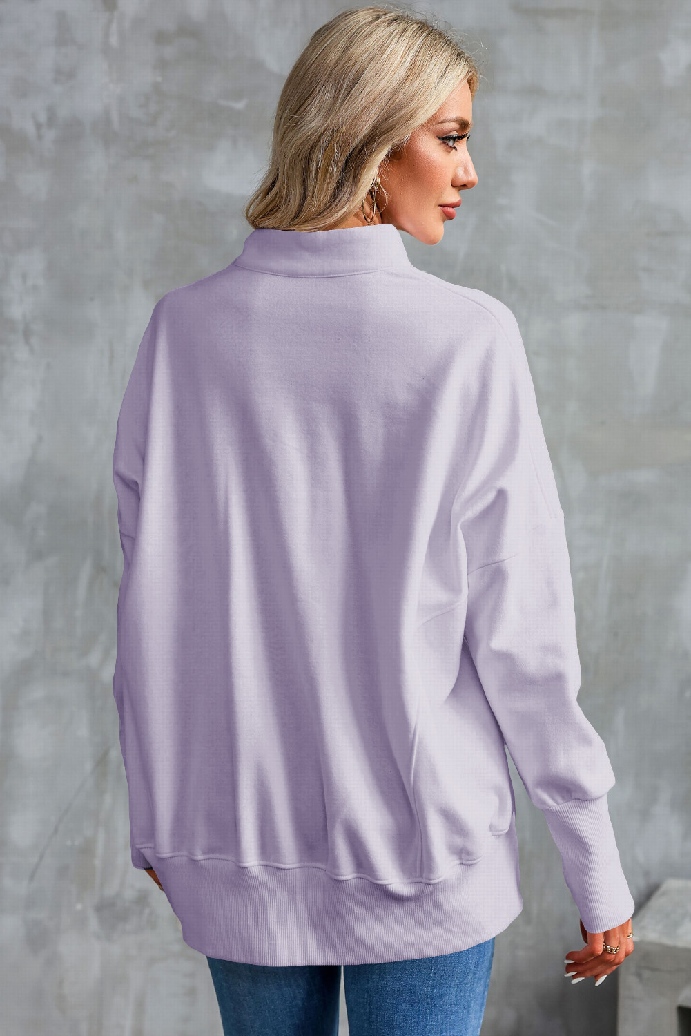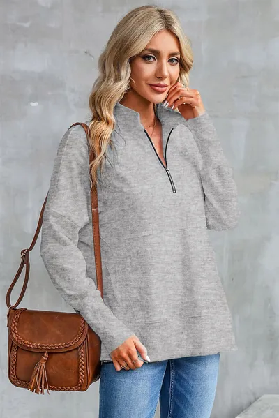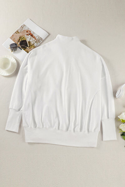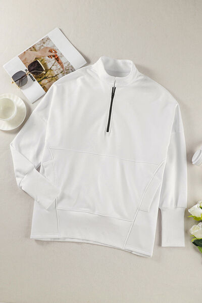 Half Zip Pocketed Dropped Shoulder Sweatshirt