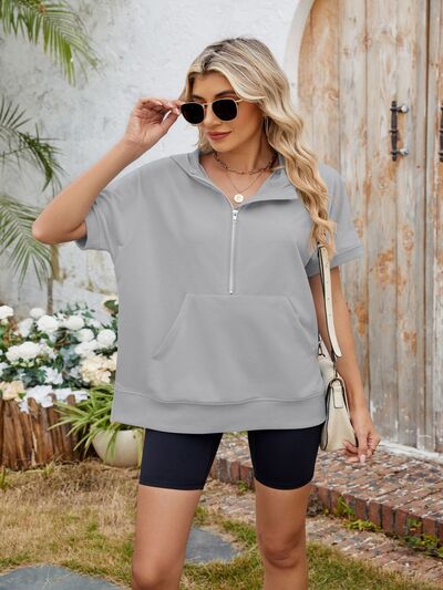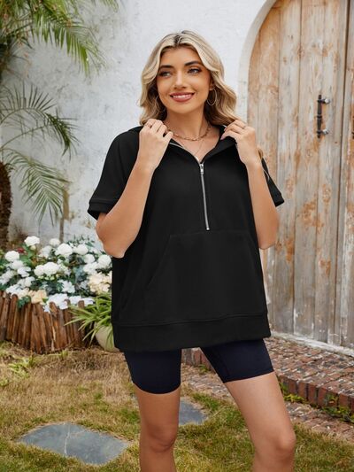 Half Zip Short Sleeve Hooded Top