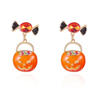 Halloween Rhinestone Pumpkin Dangle Earrings