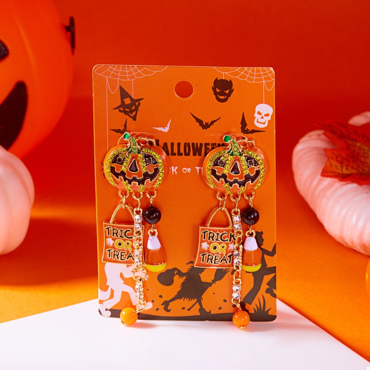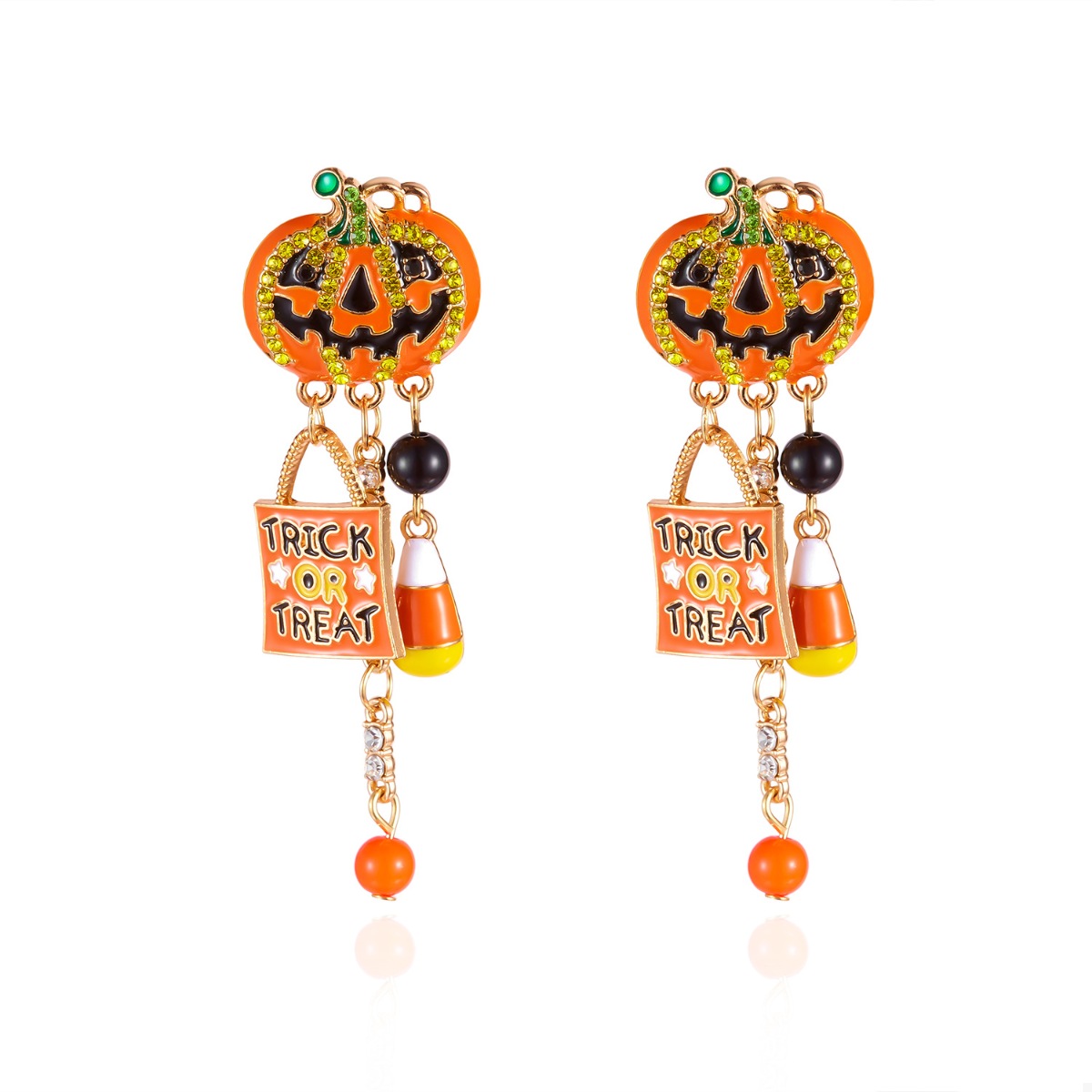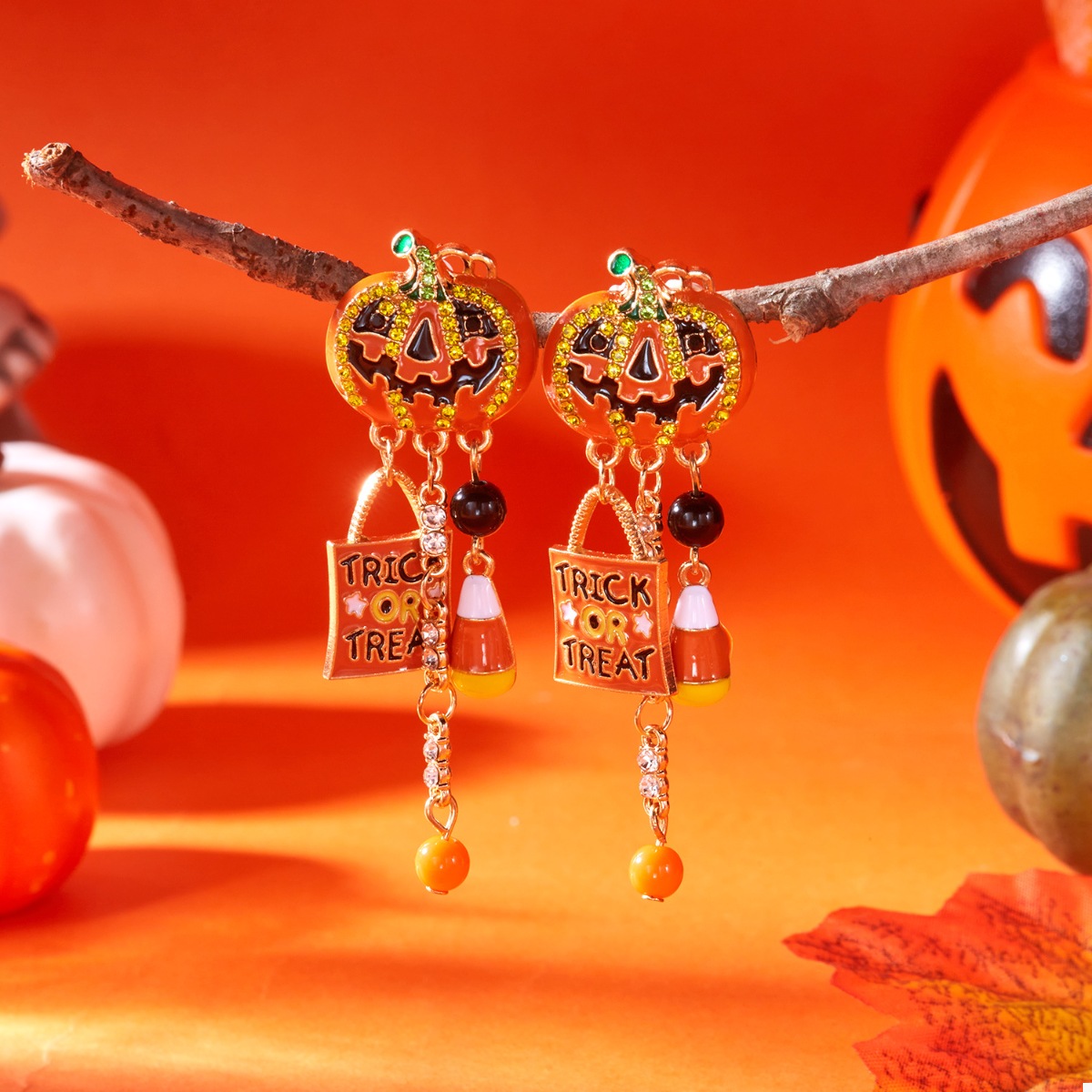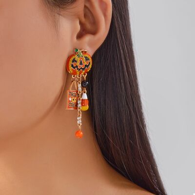 Halloween Rhinestone Pumpkin Drop Earrings