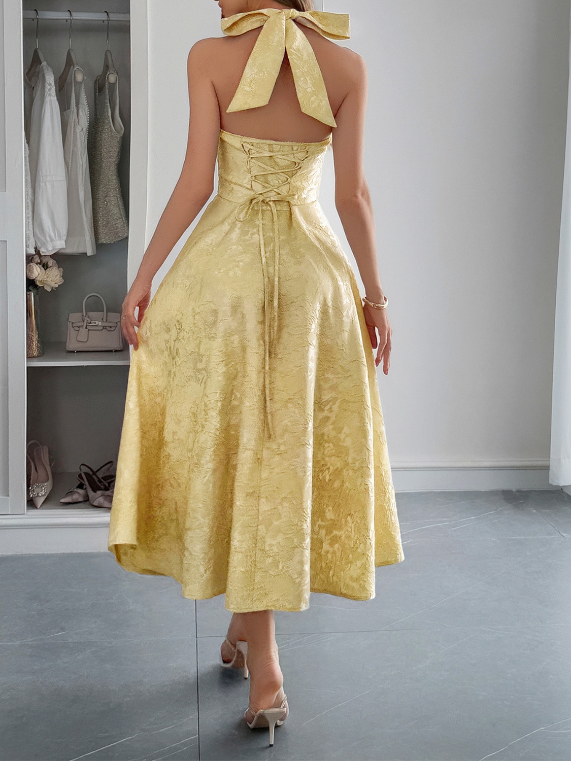 Halter Neck Midi Dress with Pockets