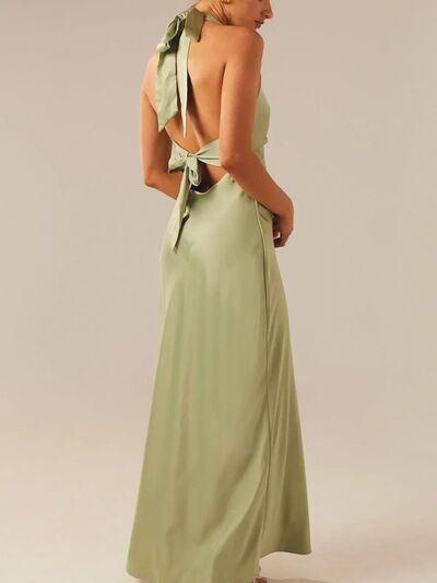 Halter Neck Wrap Maxi Dress with Tie Detail