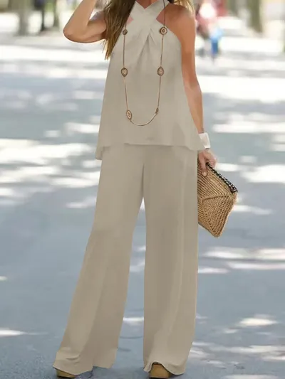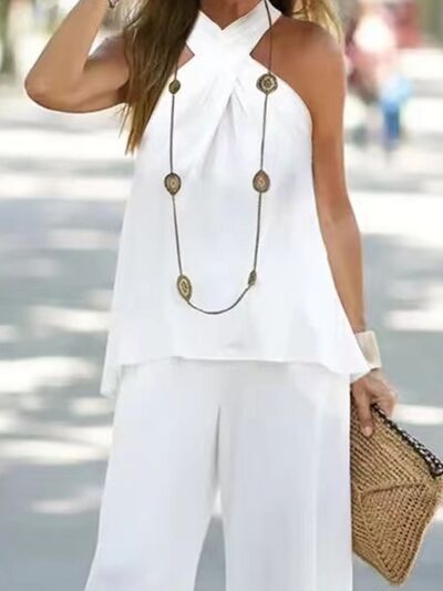 Halter Top and Wide Leg Pants Matching Set