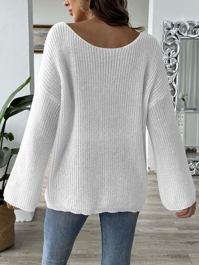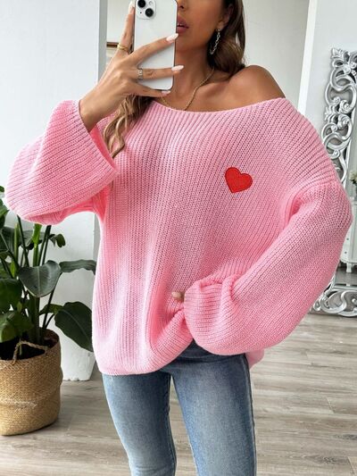 Heart Boat Neck Dropped Shoulder Sweater