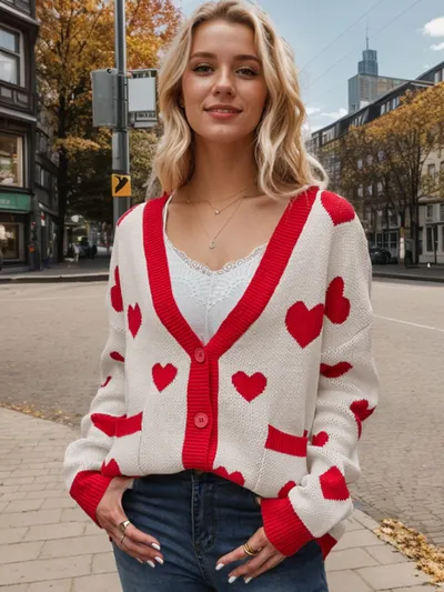 Heart Button Up Dropped Shoulder Long Sleeve Cardigan