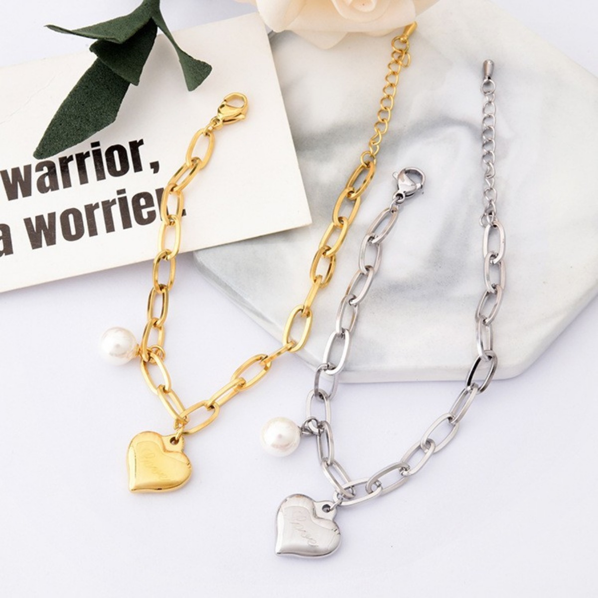 - Material:Synthetic Pearl,18K Gold-Plated,Titanium Steel,Silver-plated