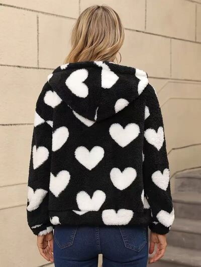 Heart Fuzzy Fleece Zip-Up Outerwear