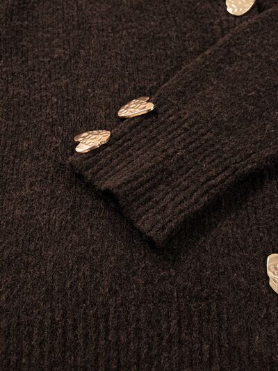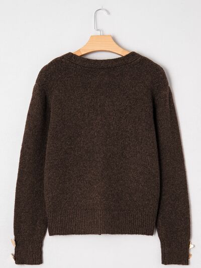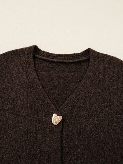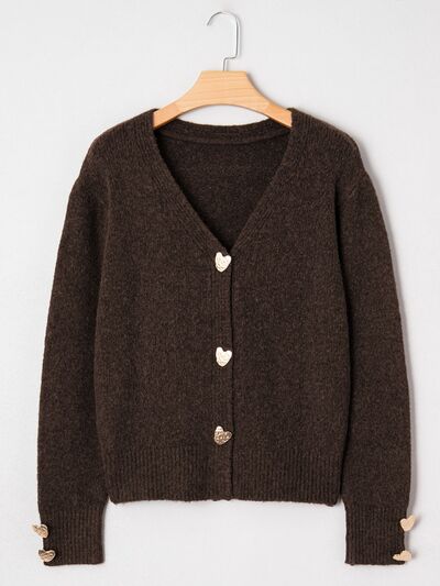 Heart Metal Button V Neck Cardigan Sweater