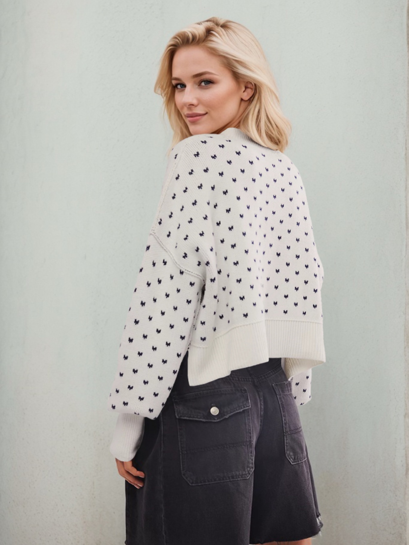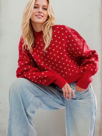 Heart-Patterned Round Neck Sweater