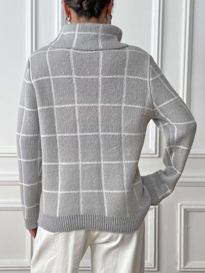 Heart Plaid Turtleneck Long Sleeve Sweater