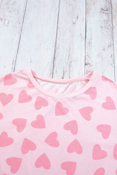 Heart Print Long Sleeve Top and Shorts Lounge Set