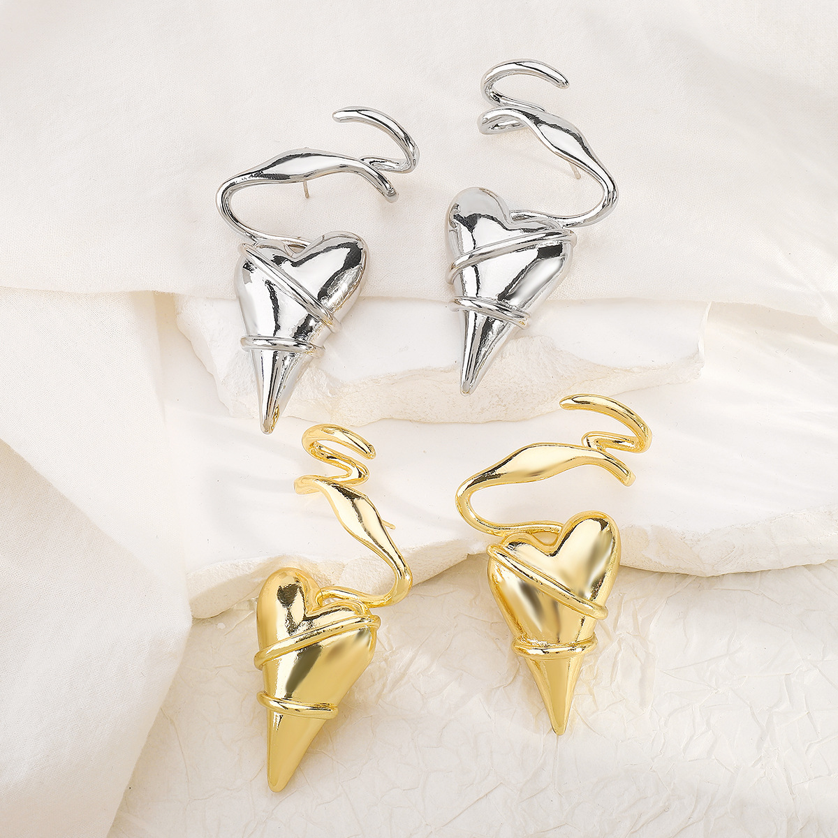 Heart-Shaped Twisted Wire Earrings