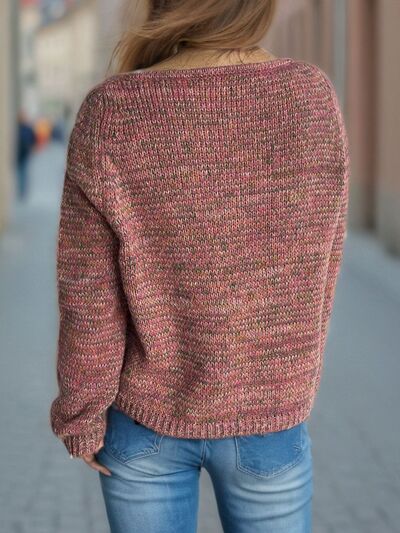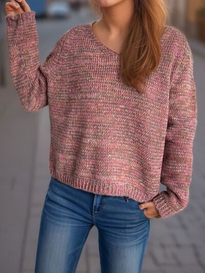 Heathered V-Neck Long Sleeve Sweater
