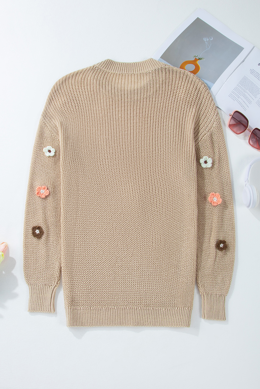 HELLO Flower Round Neck Long Sleeve Sweater