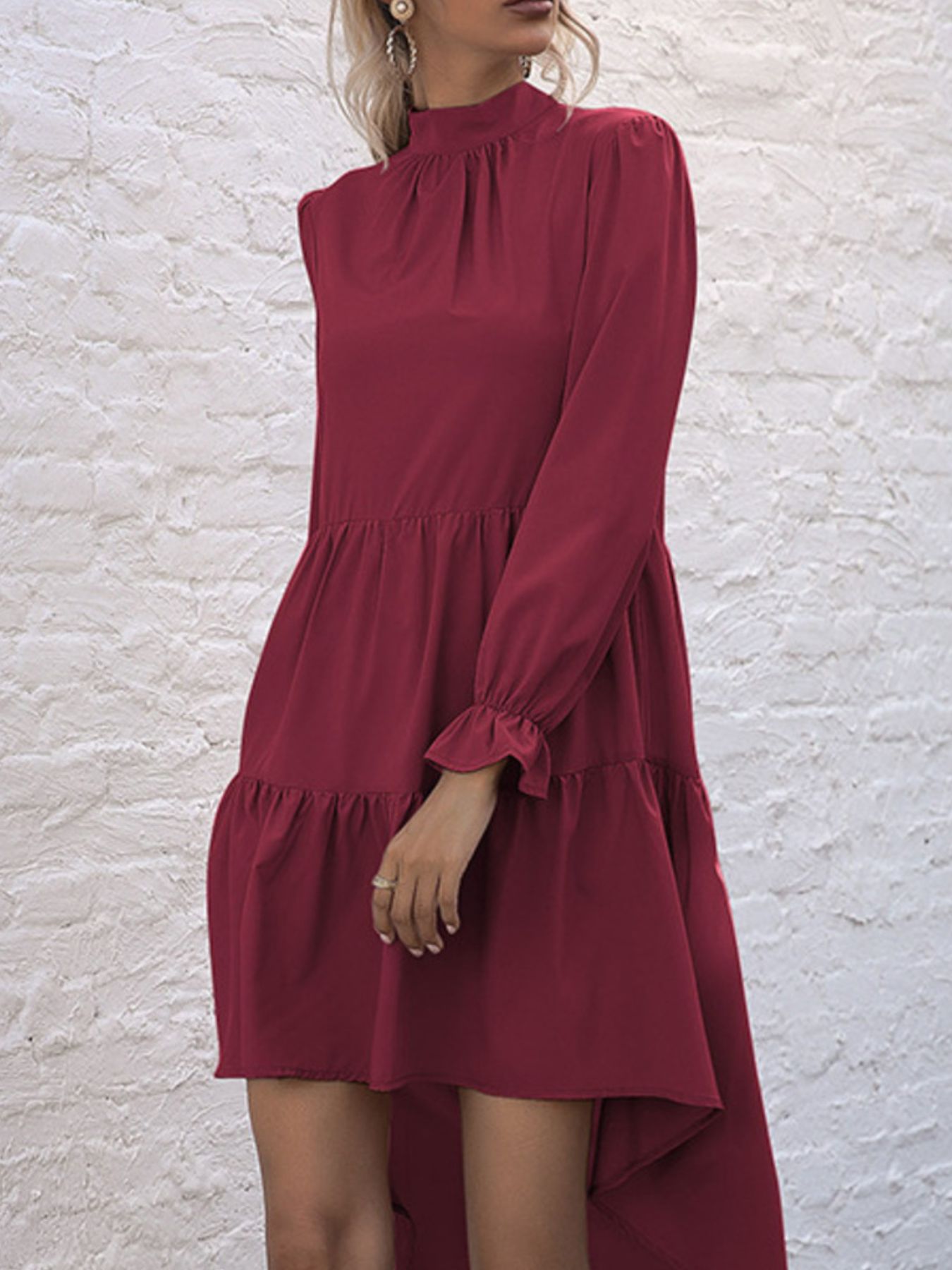High-Low Flounce Sleeve Dress