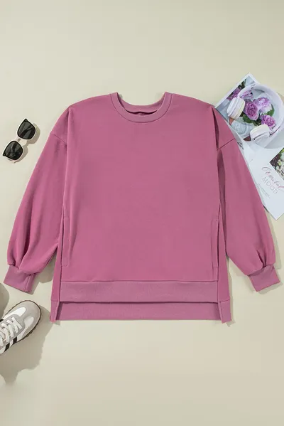 High-Low Round Neck Long Sleeve Sweatshirt