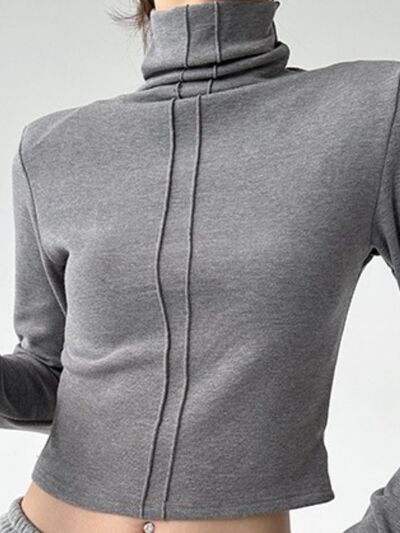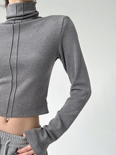 High Neck Long Sleeve Cropped T-Shirt