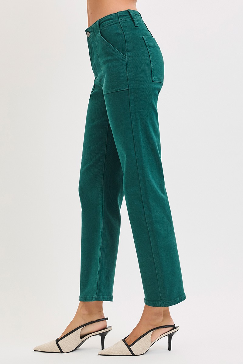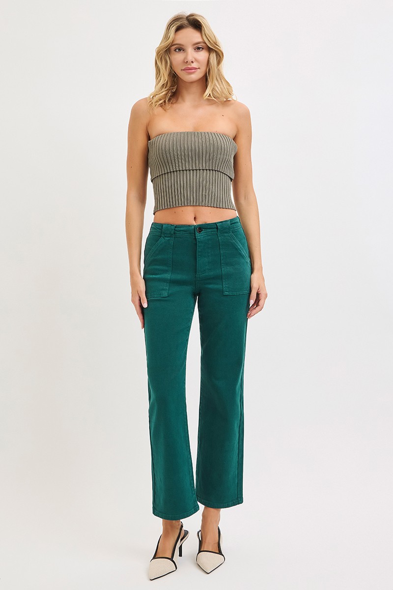 High Rise Ankle Flare Patch Pocket Jeans