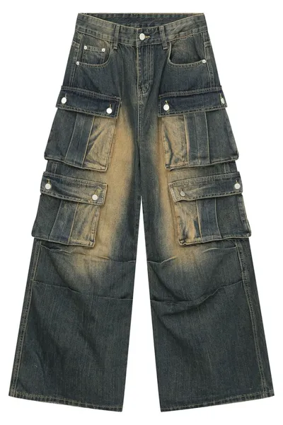 High Waist Jeans with Cargo Pockets