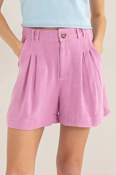High Waist Pleated Linen Shorts