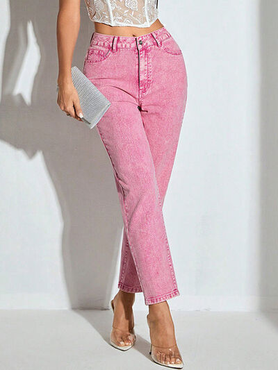 High-Waisted Wash Straight Leg Jeans