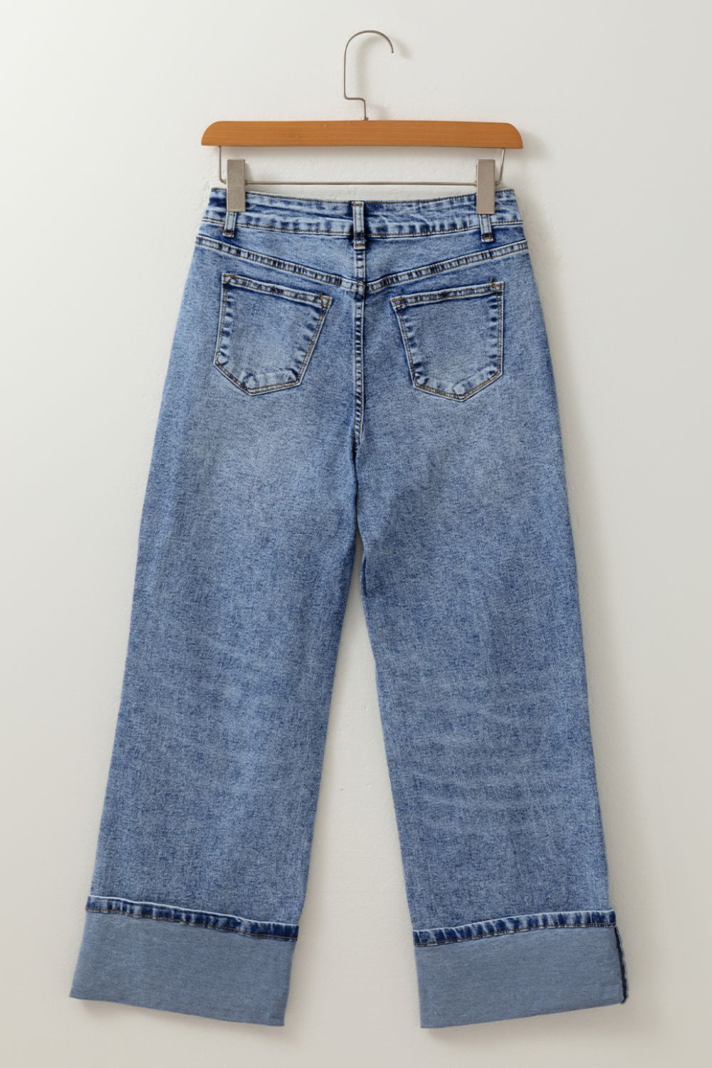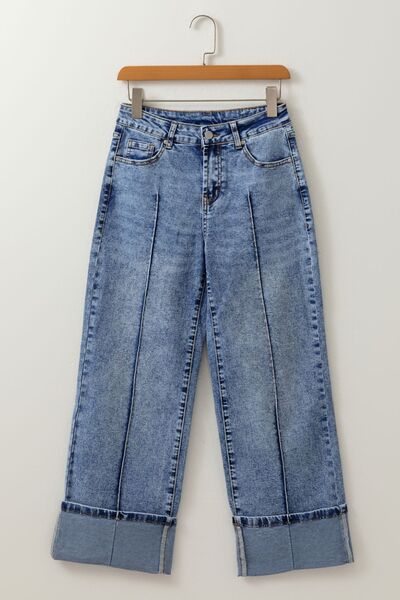 High-Waisted Wide-Leg Cuffed Jeans