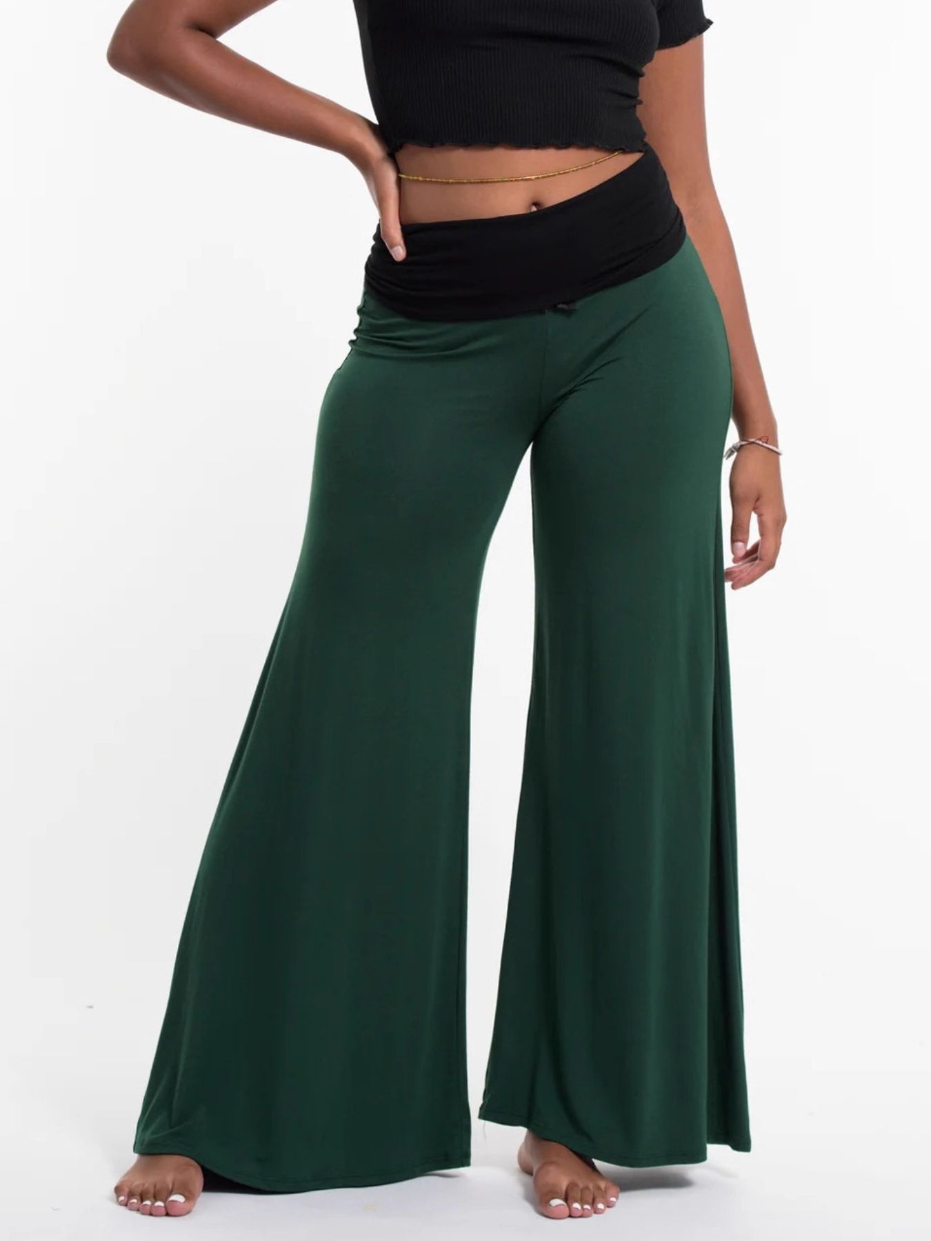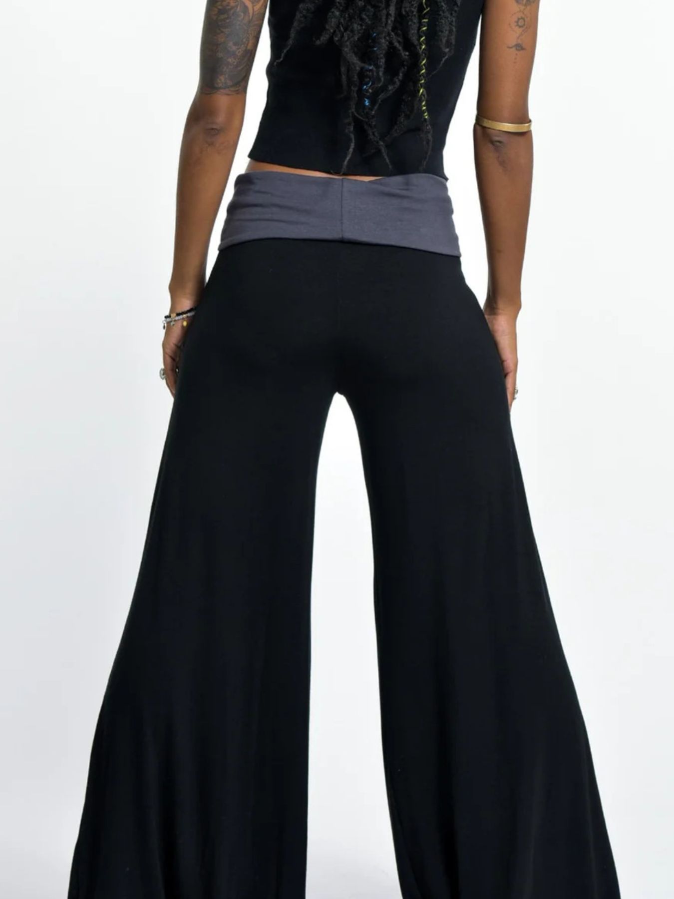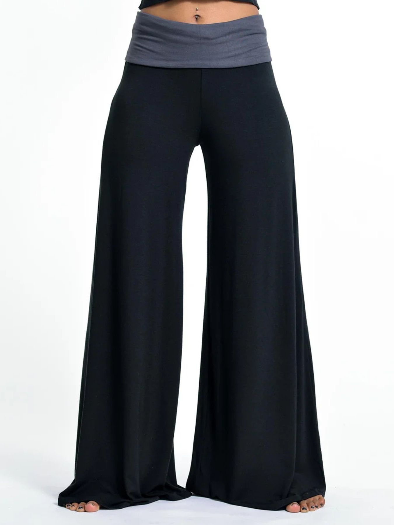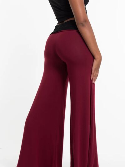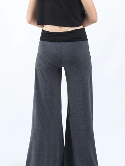 High Waisted Wide Leg Yoga Pants with Contrast Waistband