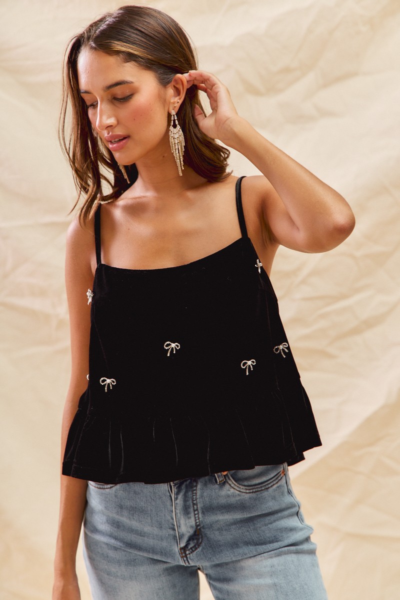 Holiday Velvet Ribbon Rhinestone Christmas Top