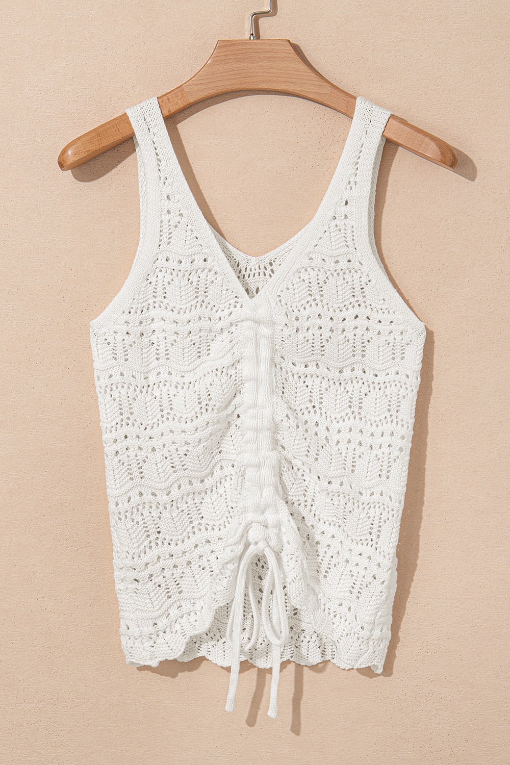Hollowed Knit V Neck Drawstring Sweater Vest