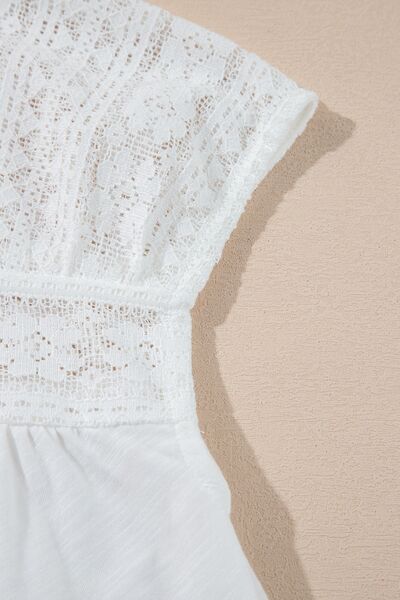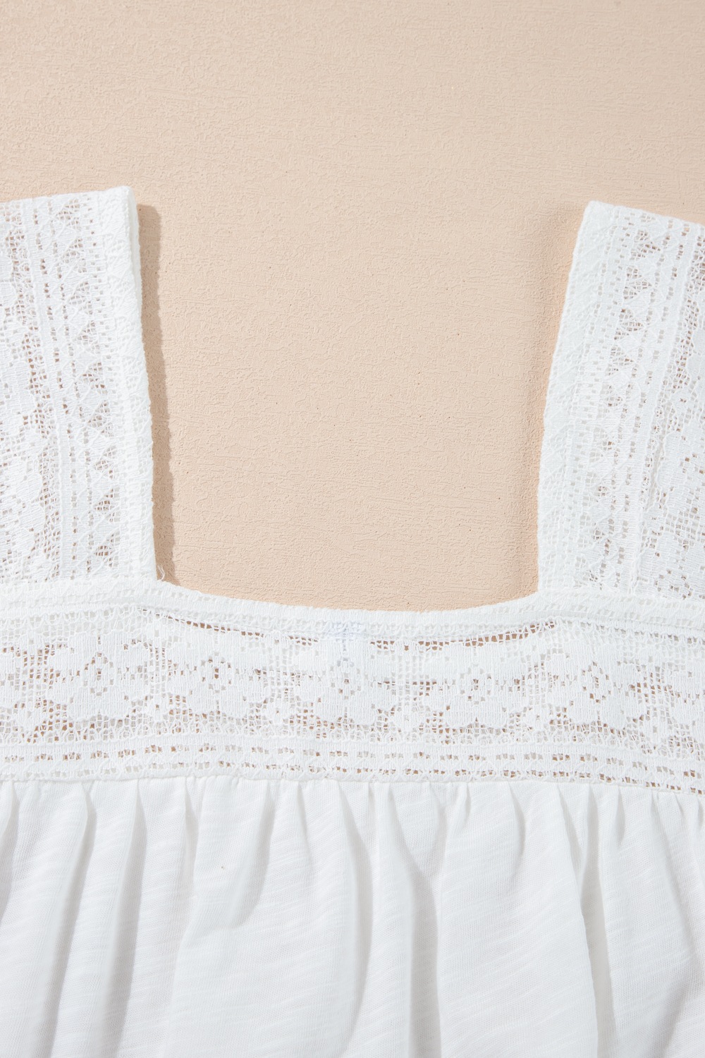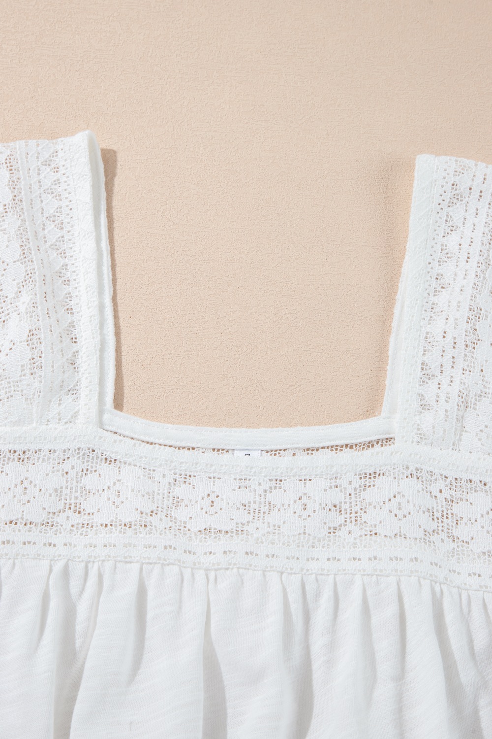 Hollowed Lace Patchwork Square Neck Short Sleeve Blouse