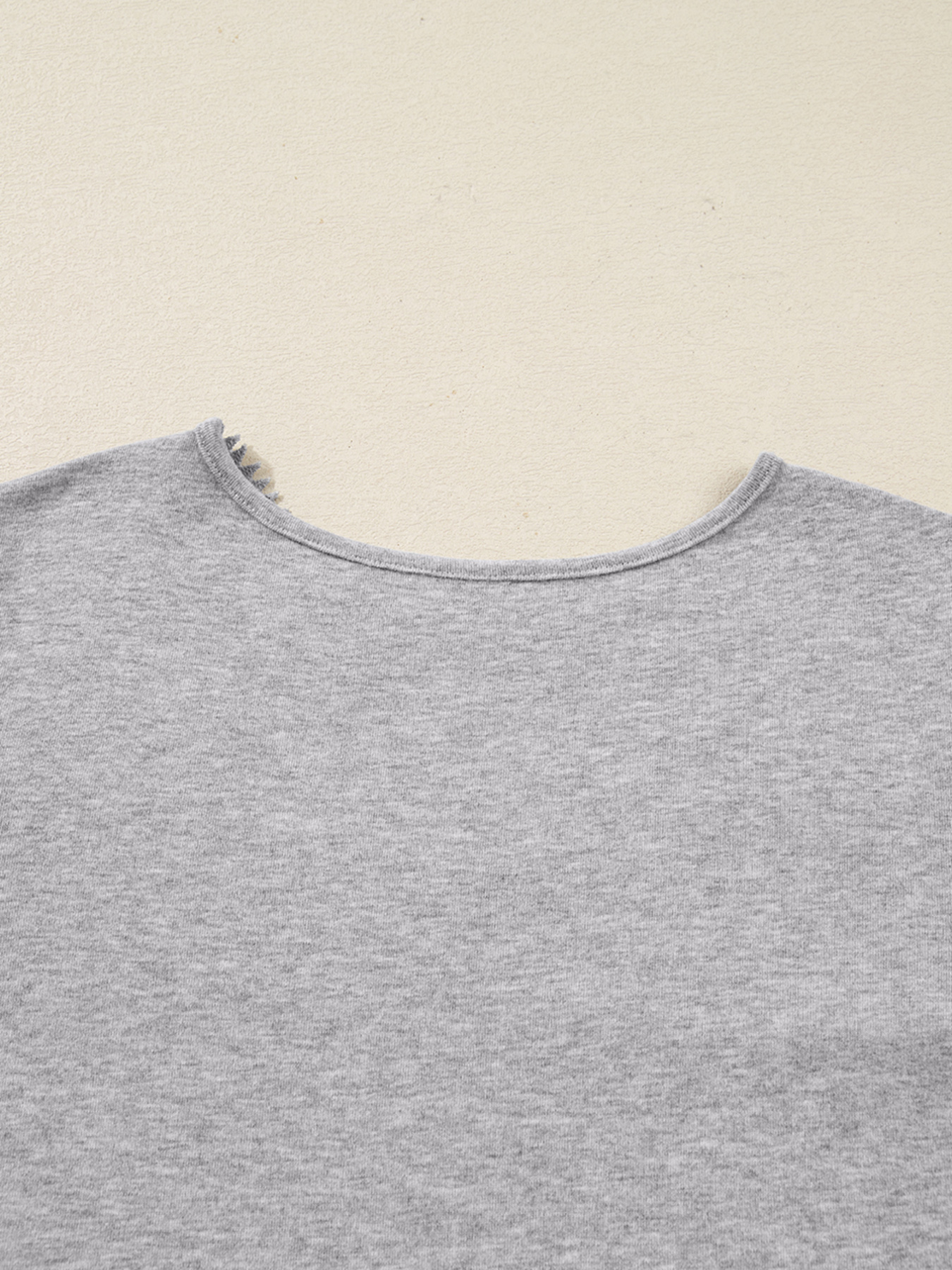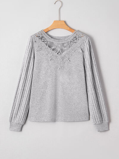 Hollowed Lace Ribbed Knit Long Sleeve Patchwork Top