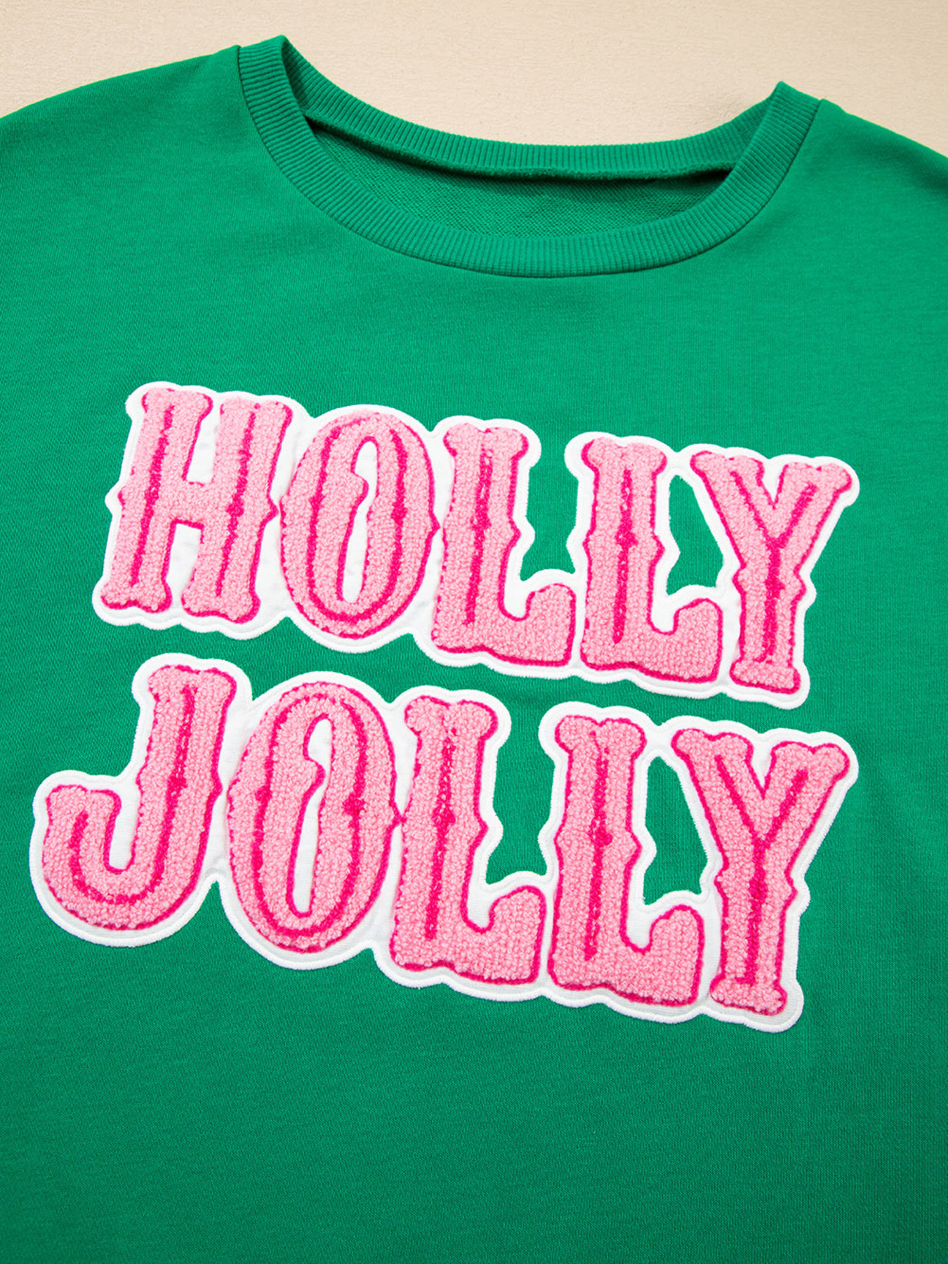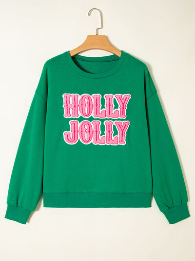 HOLLY JOLLY Towel Embroidered Christmas Holiday Sweatshirt