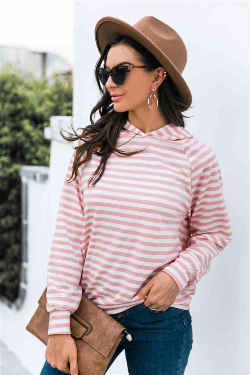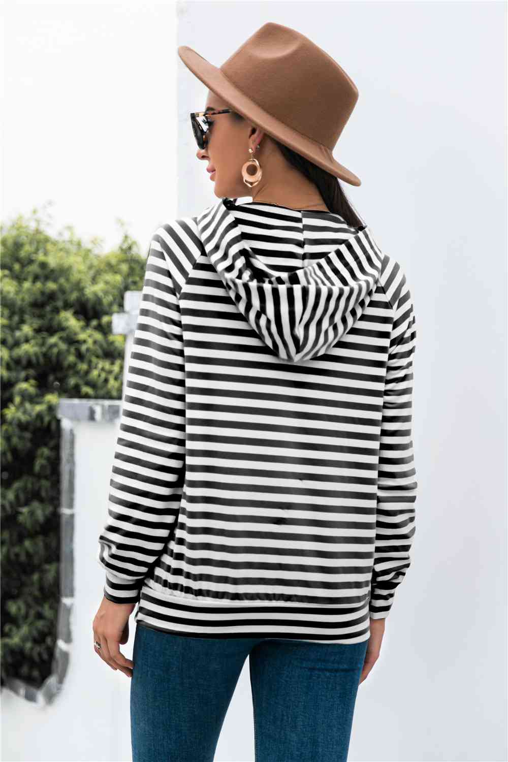 Horizontal Stripe Raglan Sleeve Hoodie