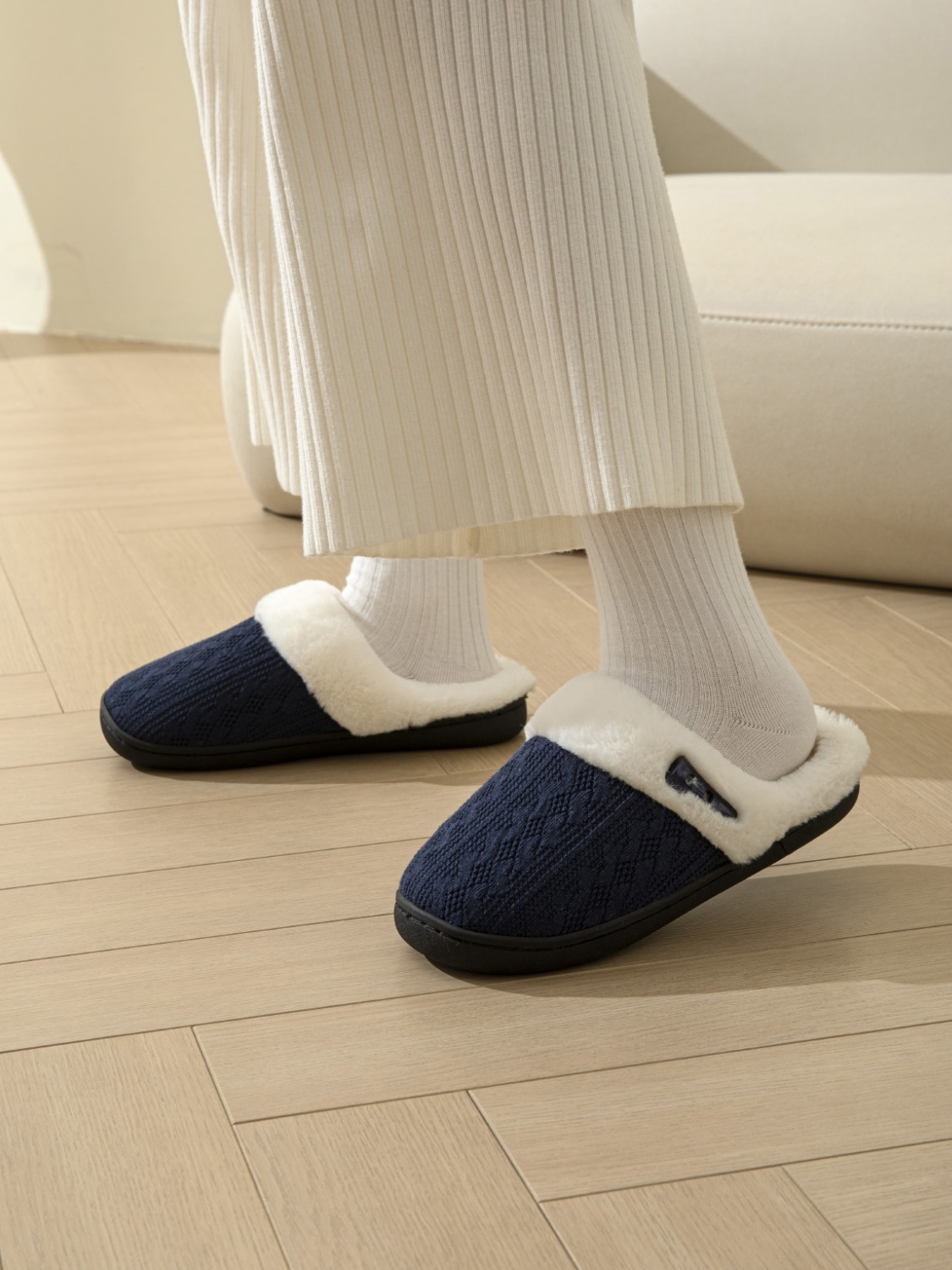 Horn Buckle Furry Texture Flat Slippers