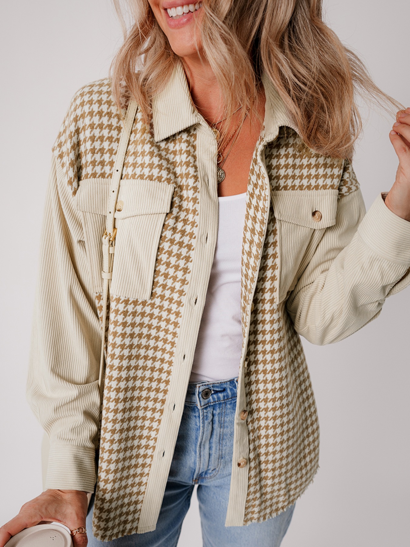Houndstooth Button-Down Jacket