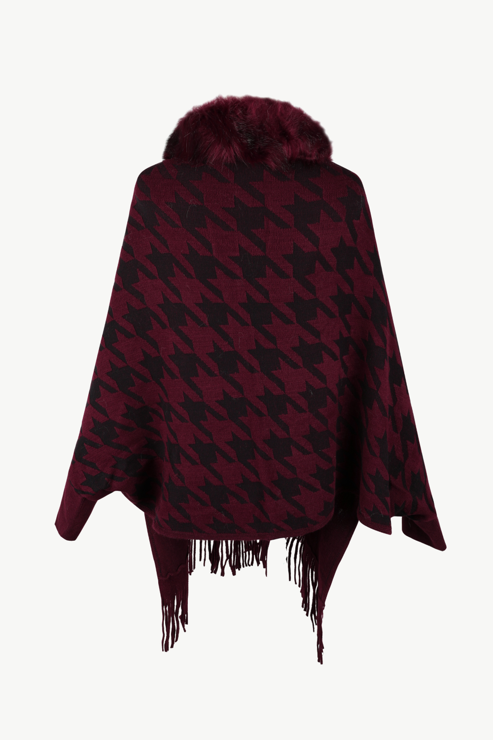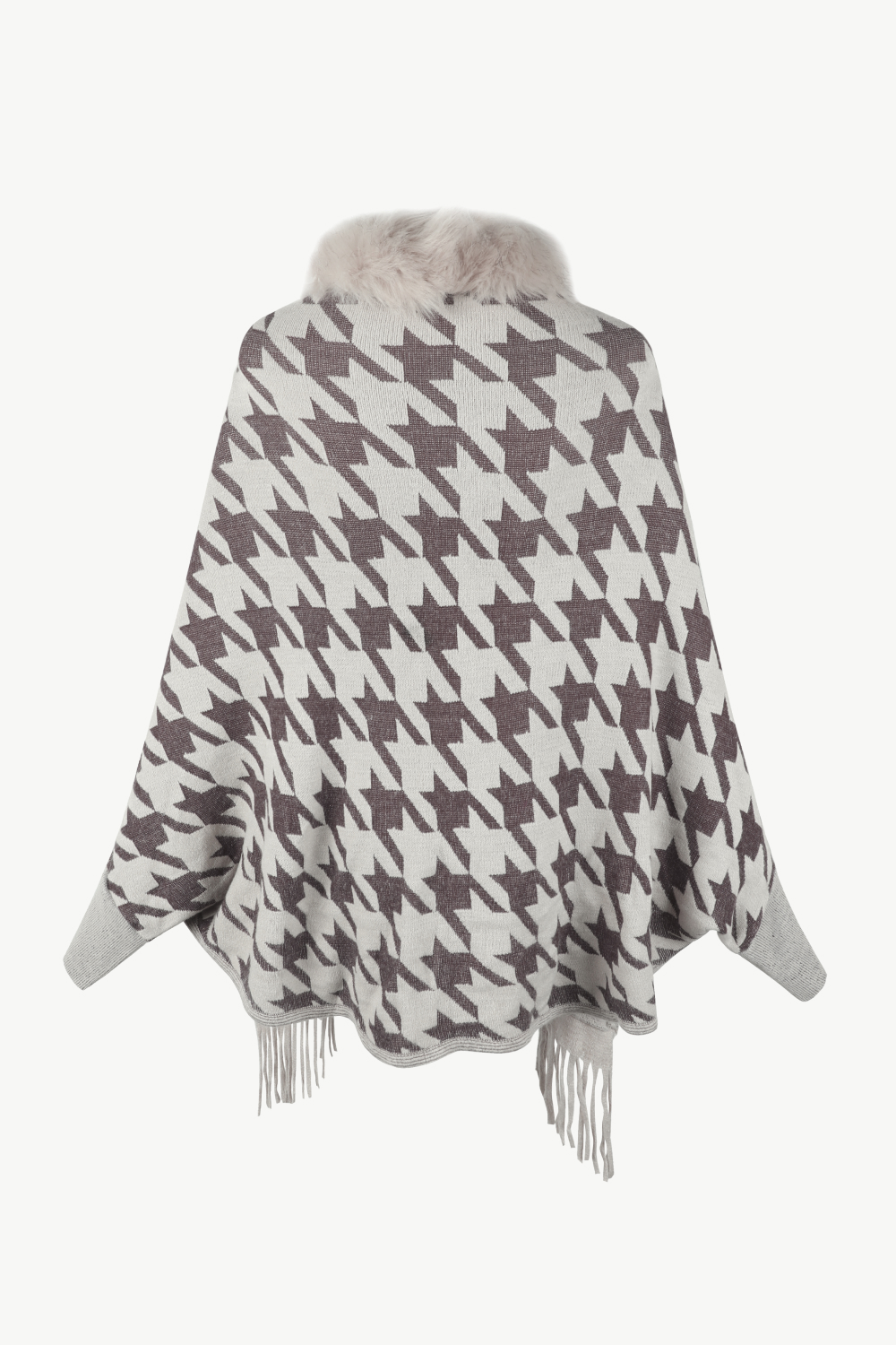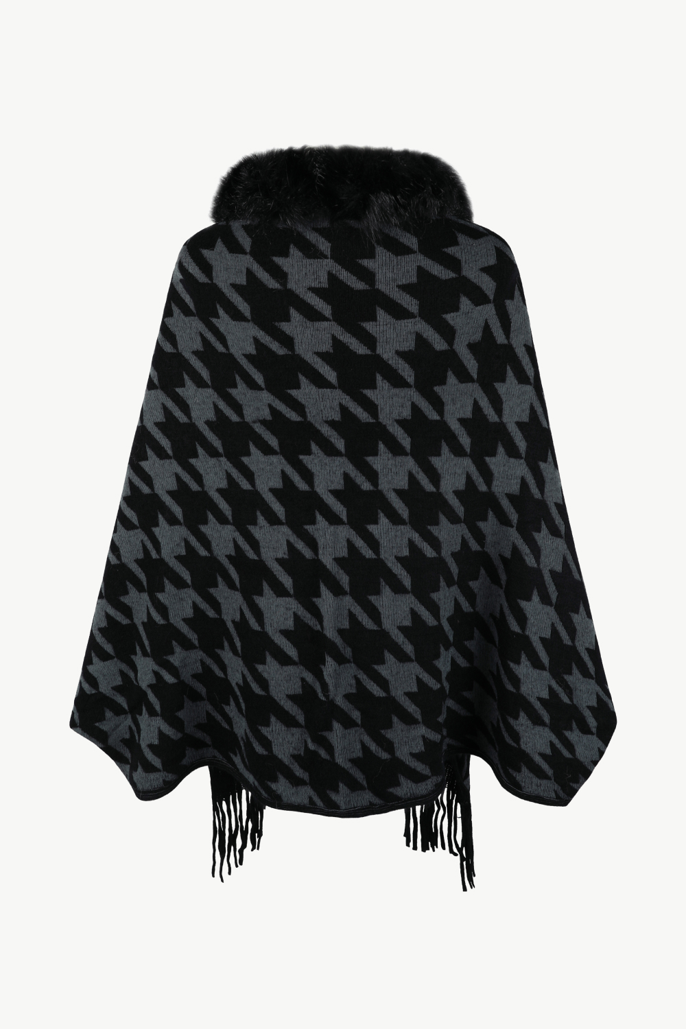 Houndstooth Fringe Hem Poncho
