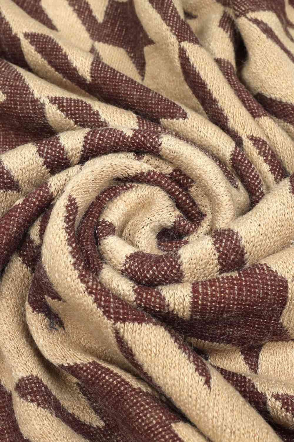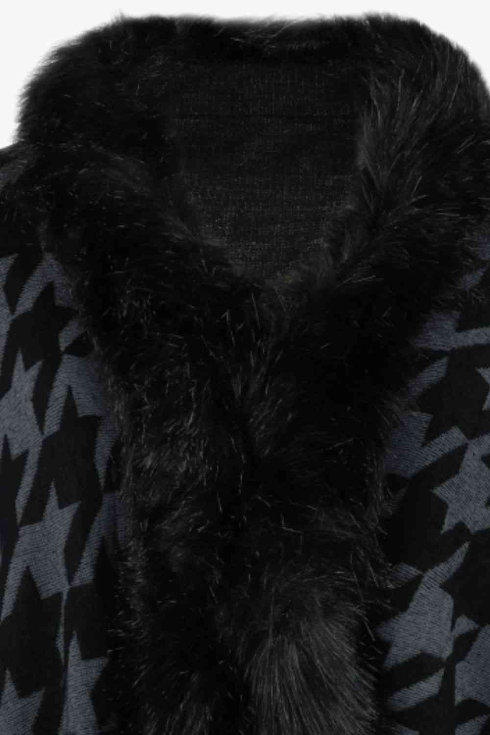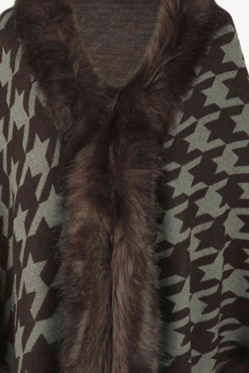 Houndstooth Fringe Hem Poncho