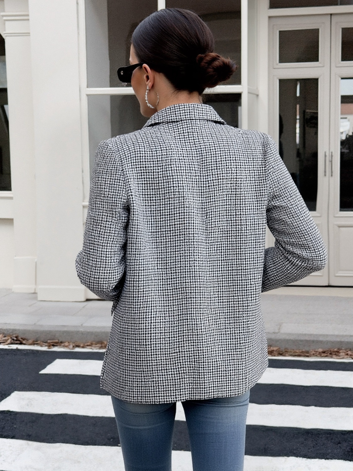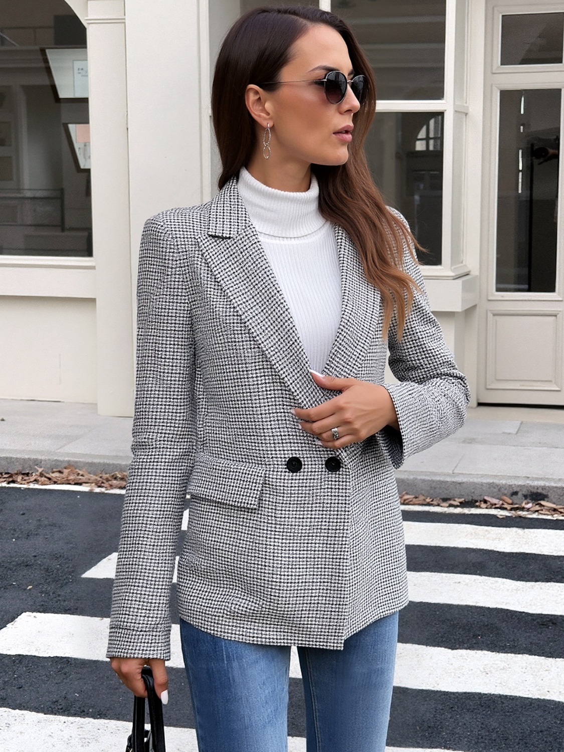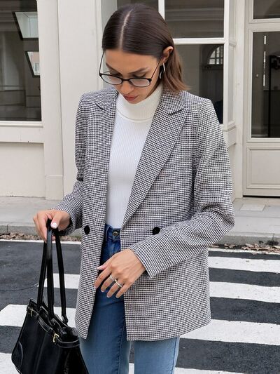 Houndstooth Patterned Double-Breasted Blazer