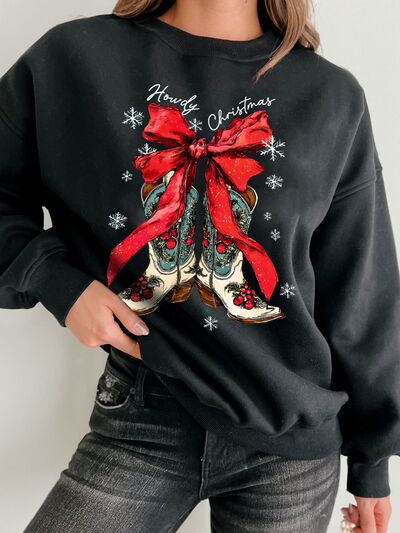 Howdy Christmas Ribbon Bow Knot Western Boots Graphic Sweatshirt