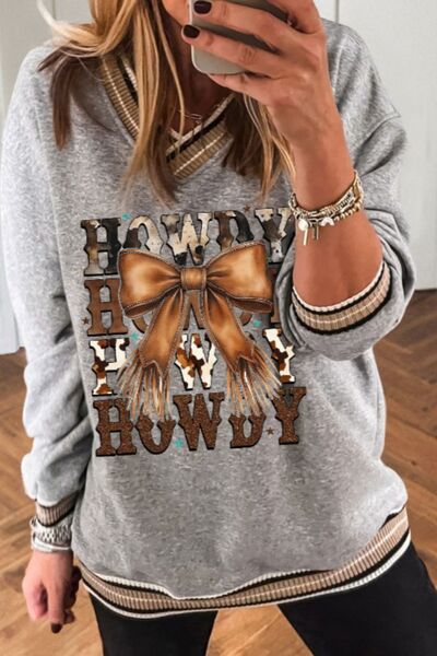 Howdy Graphic V-Neck Sweatshirt