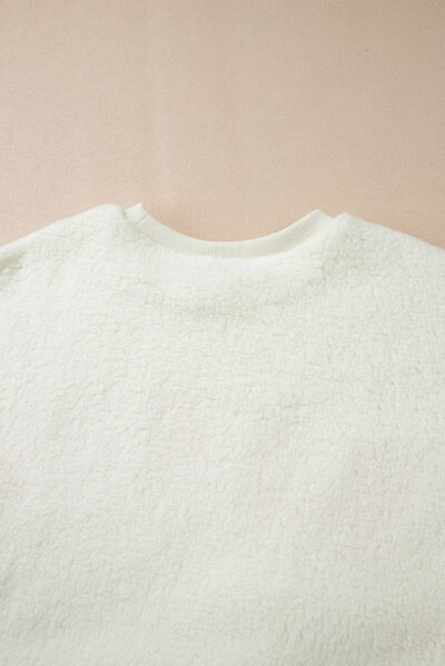 HOWDY Patched Round Neck Sherpa Sweatshirt