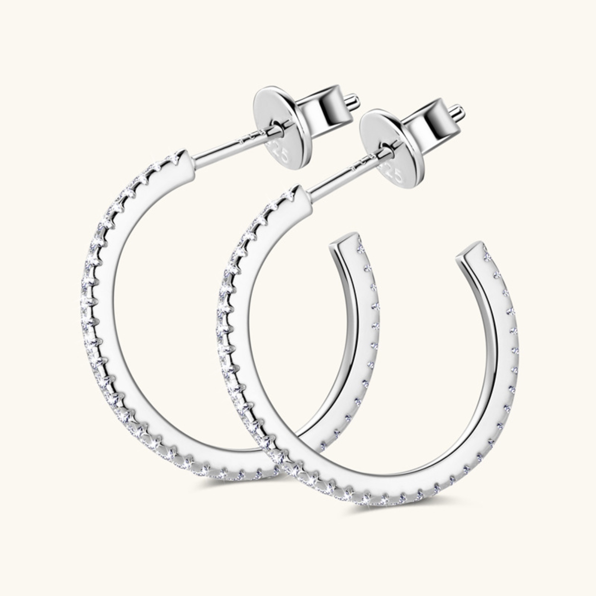 Inlaid Moissanite 925 Sterling Silver C-Hoop Earrings