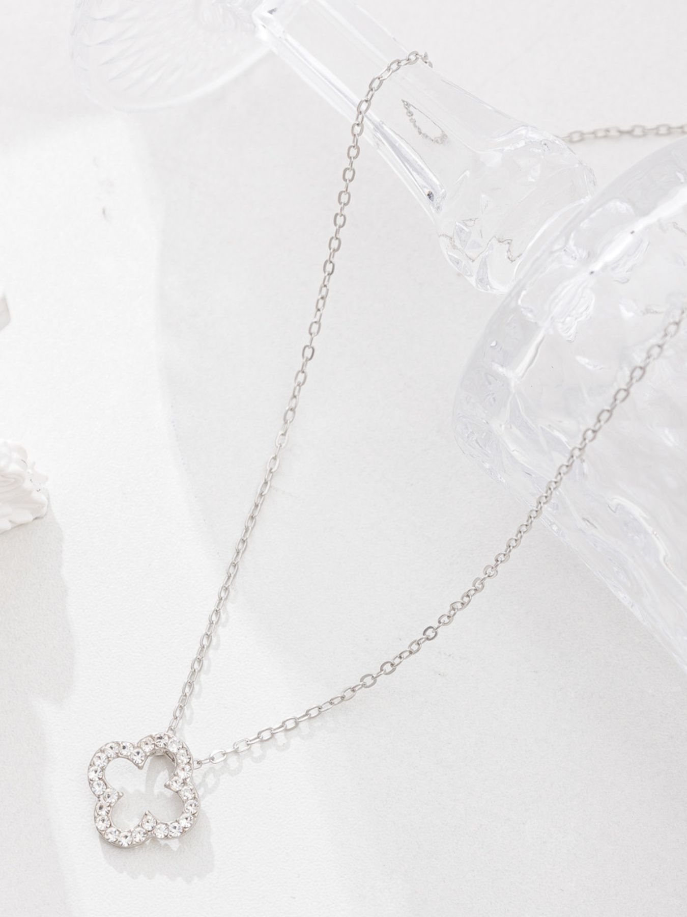 Inlaid Zircon Clover Pendant Necklace