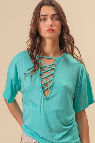 Jersey Knit Top with Criss Cross Front Neck Detail
