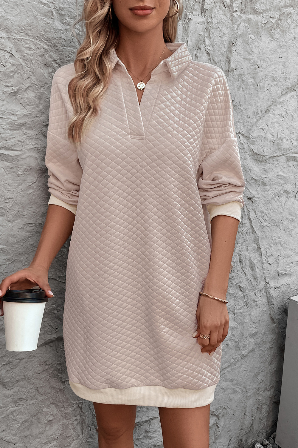 Johnny Collar Dropped Shoulder Dress
