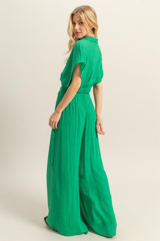 Kimono Sleeve Crop Top and Wide Leg Pants Set