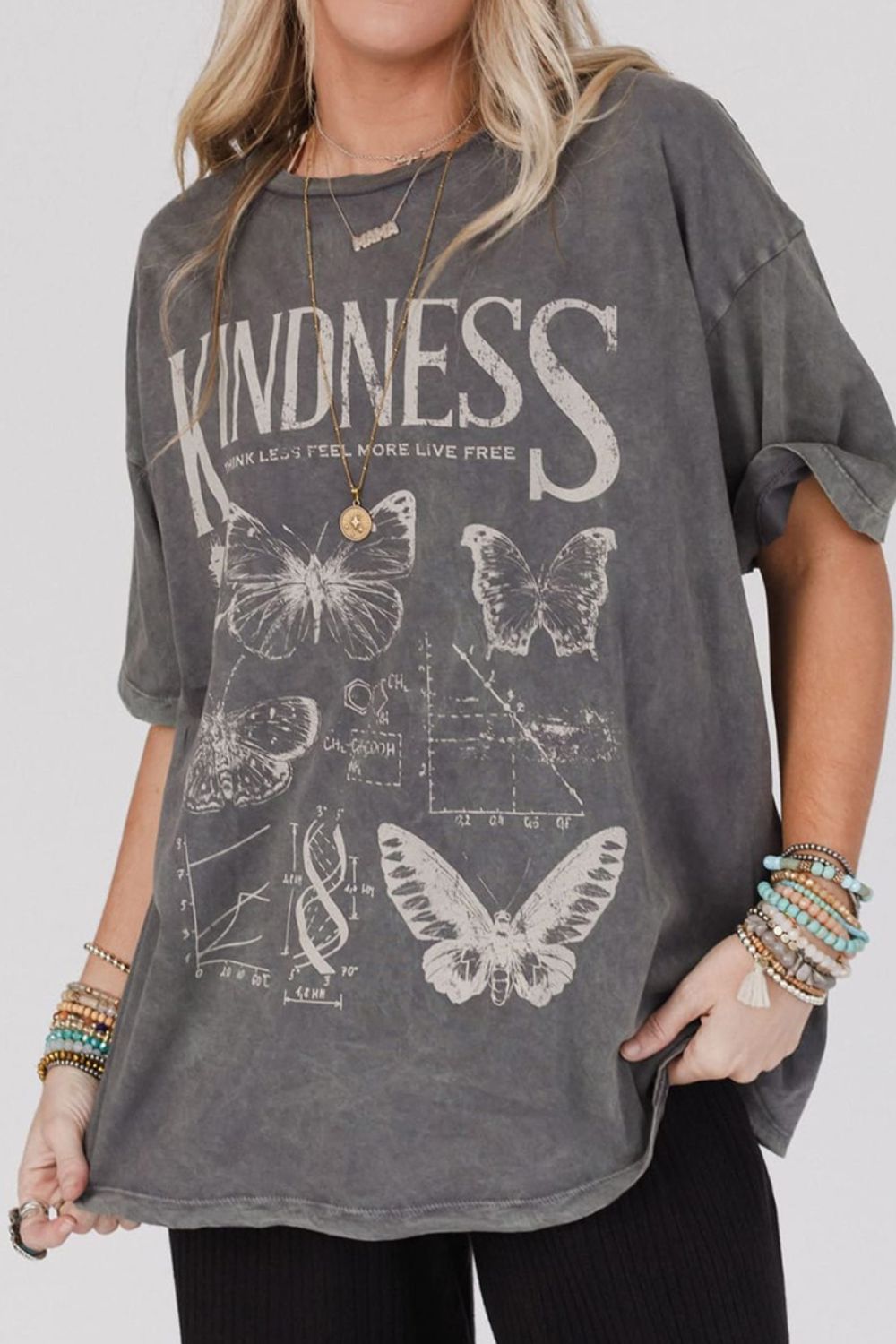 Kindness Butterflies Graphic Mineral Wash Loose Tee