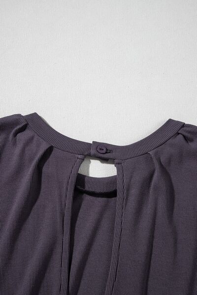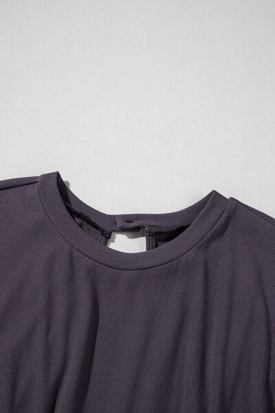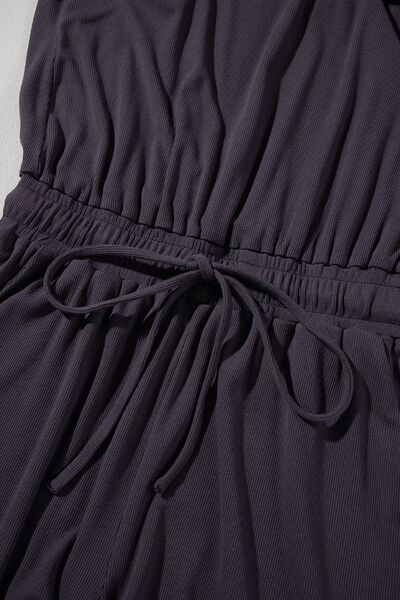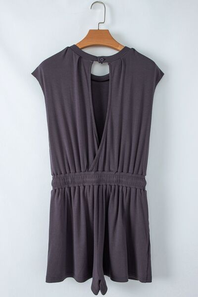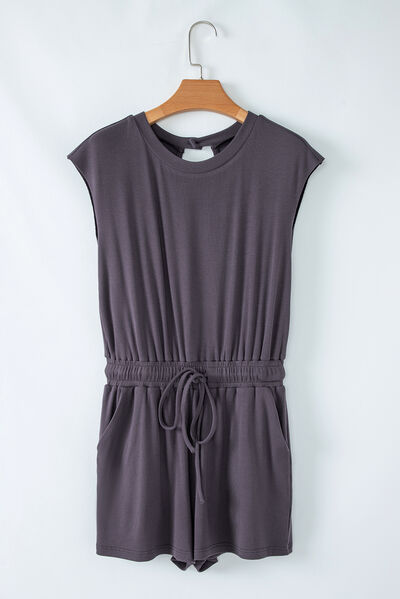 Knit Open Back Cap Sleeve Drawstring Romper